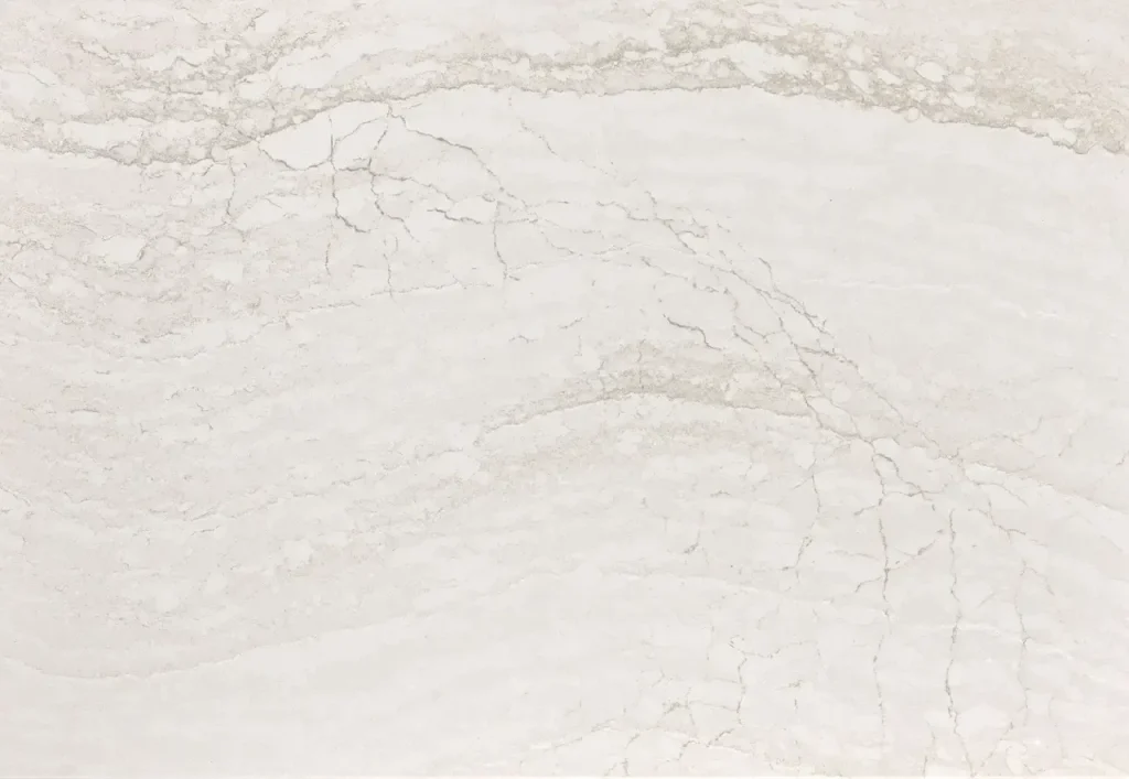 This design sample is a small select cut from a slab; it does not fully exhibit all the design characteristics of the final installed product. Cambria is pure natural quartz. Variations in the natural quartz stone color, pattern, size, shape, and shade are unique and inherent characteristics of this product. Cambria is not a seamless product; seams are visible. Where there are seams, the product pattern and shade will change. These variations do not affect performance and do not qualify for product replacement. Cambria Satin™ finish will show surface markings caused during normal use, which are easily removed by simply washing with a soft cotton cloth and warm water; use a mild soap if desired. This design has large visible surface movement.